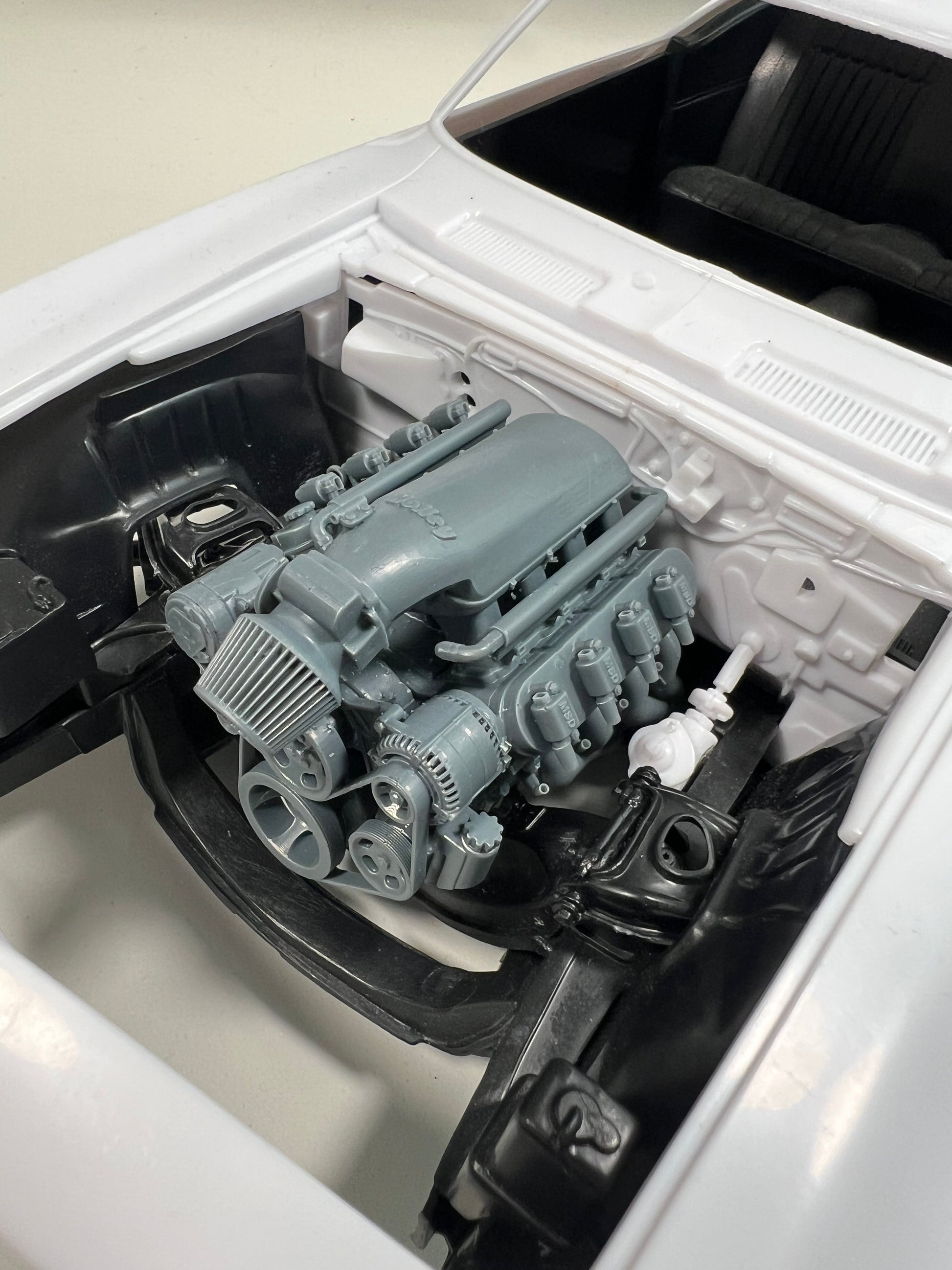 The Model Behavior LSX Engine/T-56 Package for the Revell/Monogram 1/12th Camaro kit is a stunner! You get the engine and transmission sold in our standard packages designed to install in your model with NO MODIFICATIONS. Included in this package is a new transmission crossmember to replace the kit part, a 4-core LS style radiator that attaches to the kit radiator support, a Cadillac CTS-V style electric fan with shroud that attaches to the radiator, an ECU, a clutch master cylinder, tubular headers that connect directly to the kit exhaust system, driveshaft that connects the T-56 with the kit rear end, AC/Heater hose connector for the firewall (if you wish to remove the heater box for a smoothed firewall), and it all fits under the hood! The Holley Ram fuel injection will make your Camaro restomod the talk of the model club!