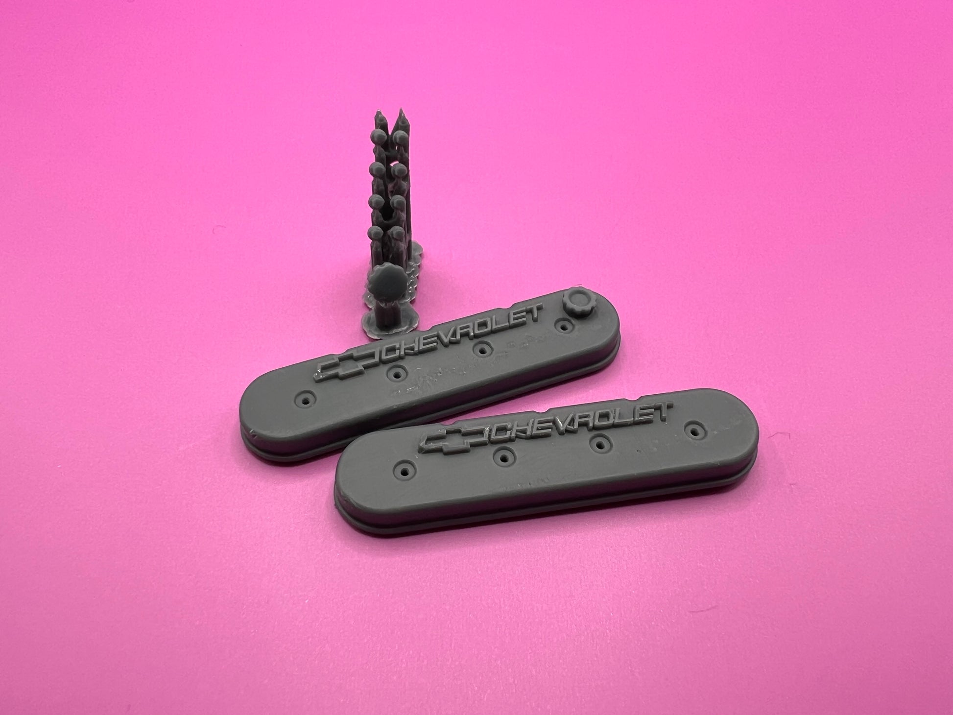 For that Chevrolet build that needs a slightly different flavor from the standard LS package components these valve covers are the solution! As with the standard LS Packages the hold down bolts and oil fill cap are separate from the valve covers on 1/12 and 1/8 scales, molded in the smaller scales. Sold as a matching pair!