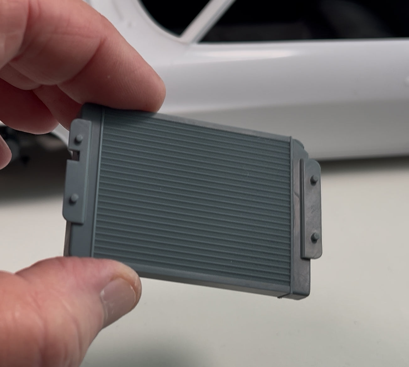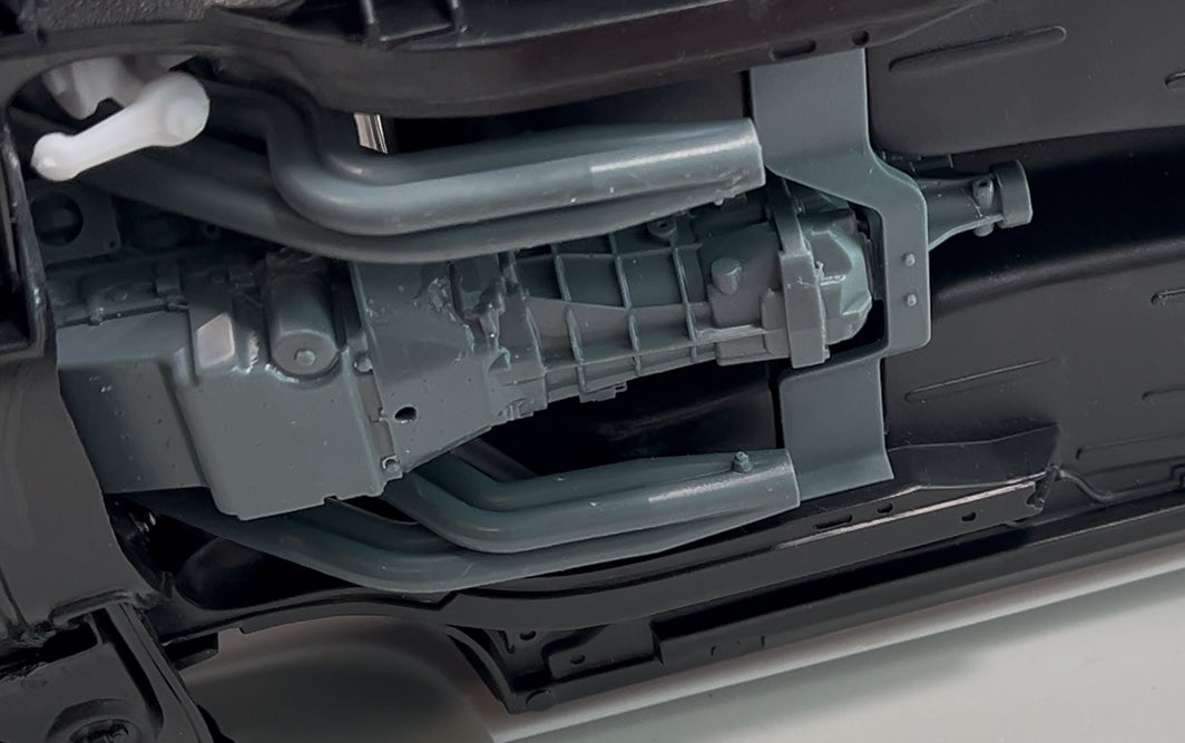 The Model Behavior LSX Engine/T-56 Package for the Revell/Monogram 1/12th Camaro kit is a stunner! You get the engine and transmission sold in our standard packages designed to install in your model with NO MODIFICATIONS. Included in this package is a new transmission crossmember to replace the kit part, a 4-core LS style radiator that attaches to the kit radiator support, a Cadillac CTS-V style electric fan with shroud that attaches to the radiator, an ECU, a clutch master cylinder, tubular headers that connect directly to the kit exhaust system, driveshaft that connects the T-56 with the kit rear end, AC/Heater hose connector for the firewall (if you wish to remove the heater box for a smoothed firewall), and it all fits under the hood! The carburetor package looks perfectly at home with the 14" air filter and opening the hood to this setup will make you smile every time!