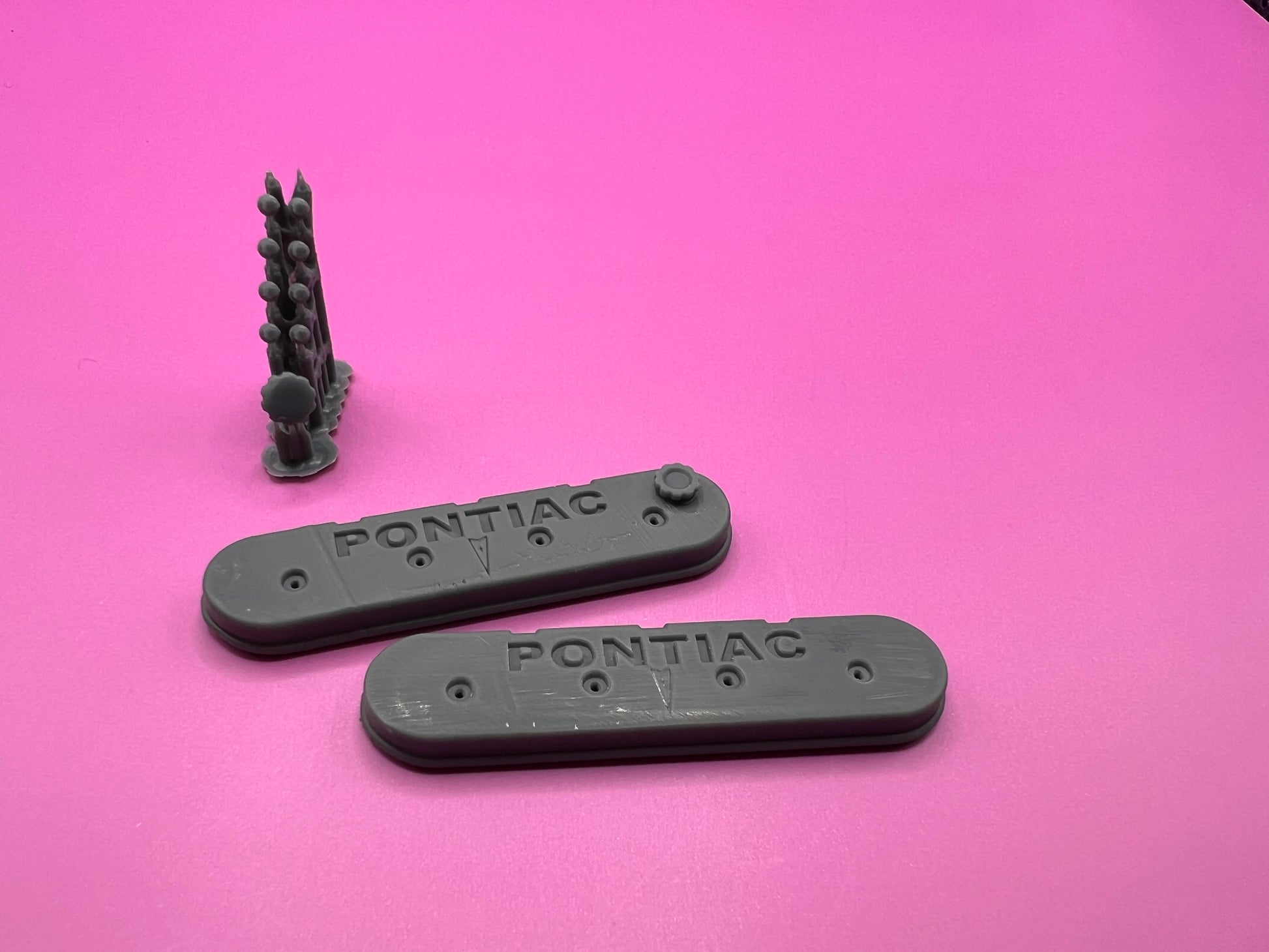 For that Pontiac build with our standard LS package components these valve covers are the solution! As with the standard LS Packages the hold down bolts and oil fill cap are separate from the valve covers on 1/12 and 1/8 scales, molded in the smaller scales. Sold as a matching pair, would look spectacular on your 1/8th Revell Trans Am!!!